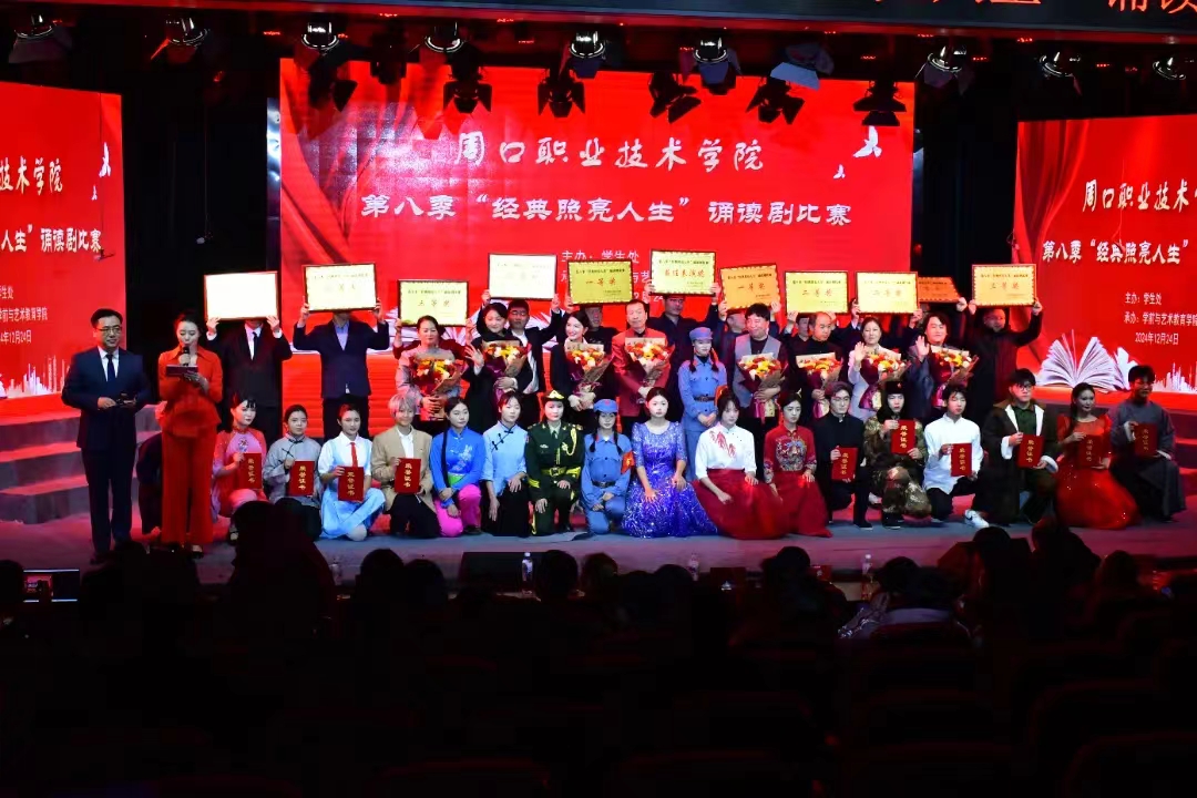 为深入学习贯彻习近平新时代中国特色社会主义思想,弘扬社会主义核心价值观,加强大学生思想道德建设,2024年12月24日,周口职业技术学院信息工程学院在励德厅举办第八季“经典照亮人生”诵读剧比赛中喜获三等奖,为学院赢得了荣誉。