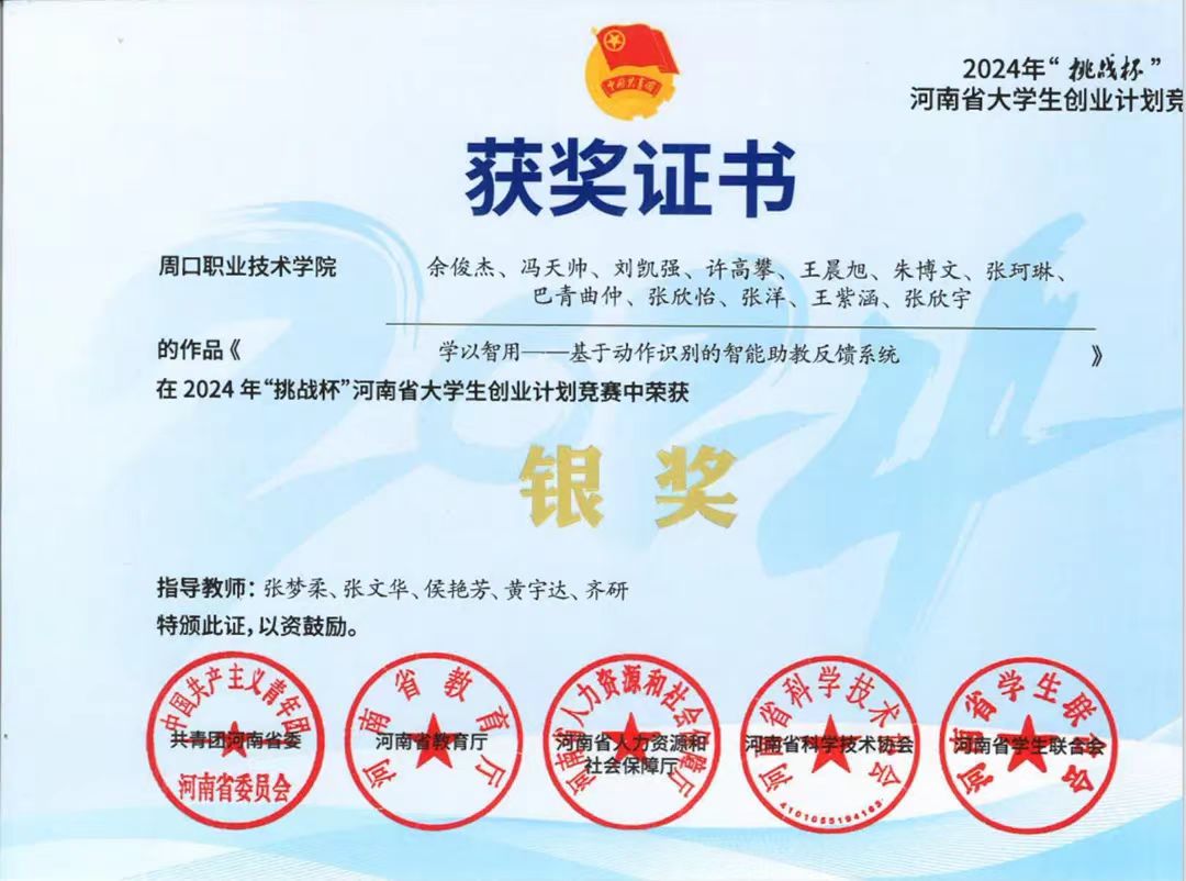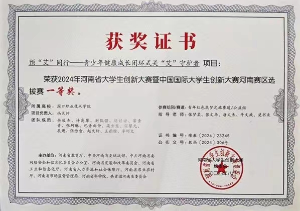 在省赛舞台上,我的其他项目亦大放异彩。“预'艾’同行一一青少年健康成长闭环式关‘艾'守护者”荣膺省赛金奖,该项目聚焦青少年防艾闭环管理体系的构建,创新提出集预防、检测、干预、关怀于一体的综合解决方案,为青少年健康成长保驾护航;“学以智用一一基于动作识别智能助教反馈系统”与“争分夺秒一一高续航柔性除颤 AED 领航者”同获省赛银奖,前者巧妙融合人工智能与教育领域,开发出精准高效的智能助教系统,有力推动教育智能化进程,后者攻克高续航柔性除颤 AED 技术难题,大幅提升急救设备性能,为挽救生命争取更多宝贵时间。在各个项目中,我充分发挥专业特长,勇挑大梁。从项目的创意构思、方案设计,到团队的组织协调、技术攻坚,再到后期的优化完善、市场推广,他皆亲力亲为、全力以赴。面对技术瓶颈与资金短缺等重重困境,他从不轻言放弃,凭借顽强毅力与创新智慧逐一化解难题。其卓越的领导才能与团队协作精神,成为项目成功的关键密钥,引领团队成员在科创征途上披荆斩棘、笃定前行。