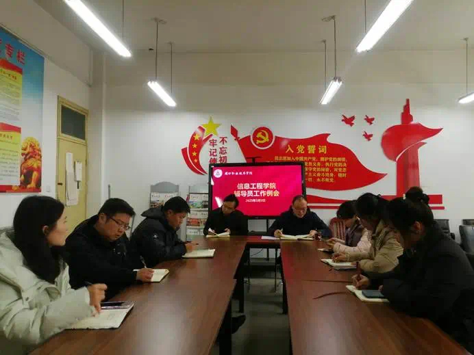 3月3日中午,在学院办公室6140,信息工程学院召开辅导员工作例会。党总支书记宋良鹤,副院长楚书来,学管办主任张矿伟及23、24级辅导员参加了本次会议,会议由楚书来主持。