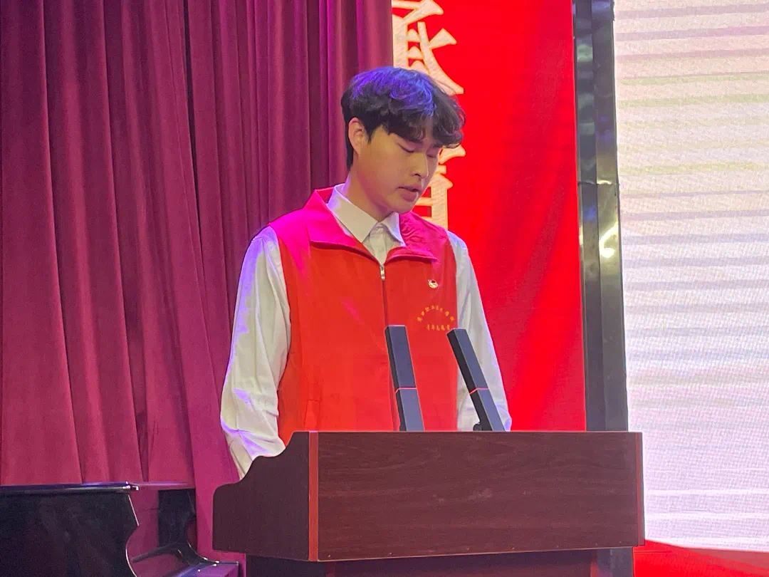 在授旗仪式环节,校党委副书记郭汝礼为校青年志愿者授予旗帜。鲜红的旗帜象征着责任与使命,也标志着周口职业技术学院2025年学雷锋系列活动正式拉开帷幕。在校青年志愿者代表郭启航同学的带领下,在场全体青年志愿者举起右拳,庄严宣誓。他们神情专注,誓言铿锵有力,传递出对志愿服务的热忱与坚定。那充满力量的声音在学艺演播厅内久久回荡,激励着每一位参与者以实际行动践行雷锋精神。通过这一仪式,进一步激发了青年志愿者们的使命感与责任感,为活动的成功举办奠定了坚实的基础。