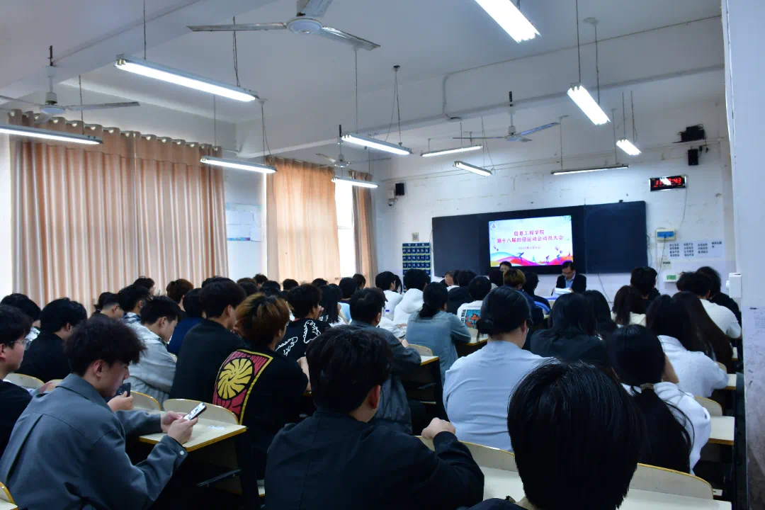 在春花烂漫的季节里,周口职业技术学院即将迎来第十八届运动会。为了鼓舞士气、凝聚力量,信息工程学院于4月8日中午在6143教室召开了动员大会。此次召开动员大会,旨在激发同学们的参与热情和团队精神,确保每位参与者都能以最佳状态投入到即将到来的比赛当中。