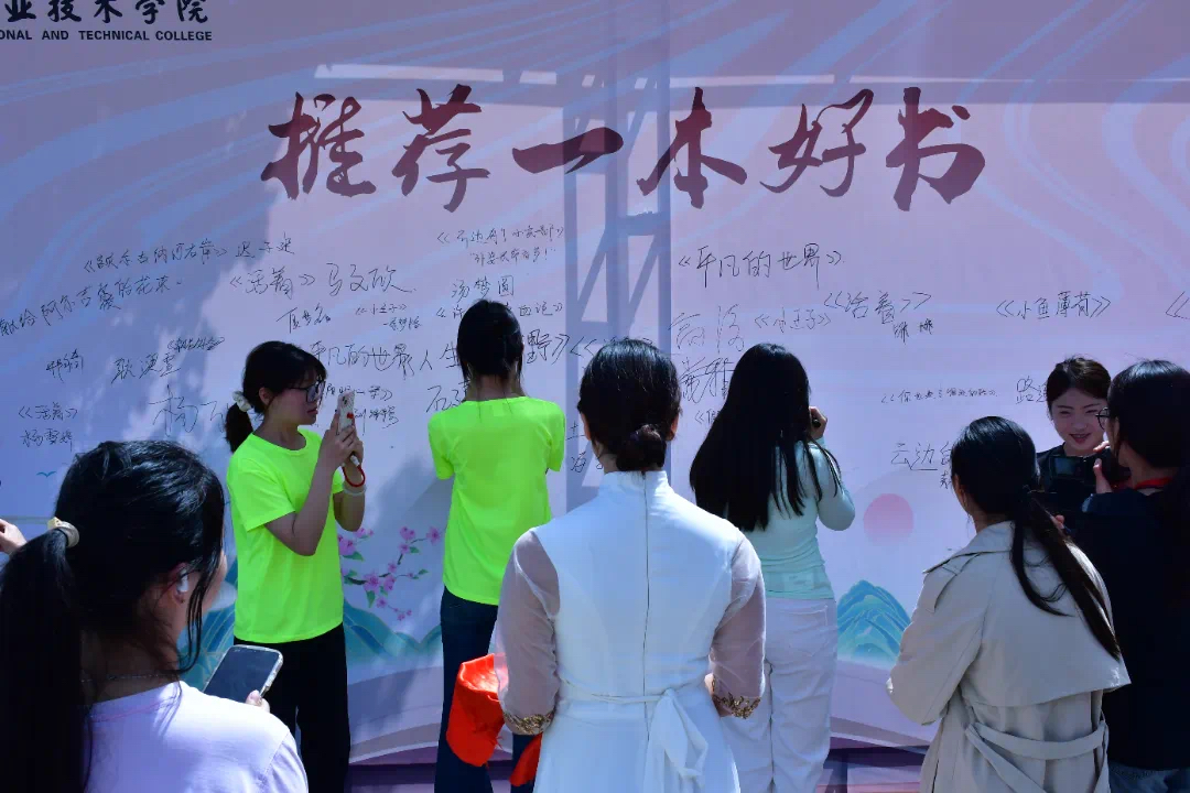 图书馆馆员代表也在启动仪式上向全体师生发出了倡议,呼吁大家积极参与到读书月活动中来,共同营造一个充满书香气息的校园环境。主会场活动结束后,师生们移步至“好书推荐墙”活动现场。大家纷纷将自己喜欢的一本书写在好书推荐墙上。这一互动环节不仅激发了大家的阅读热情,也为全校师生提供了一个分享和发现优秀书籍的平台。
