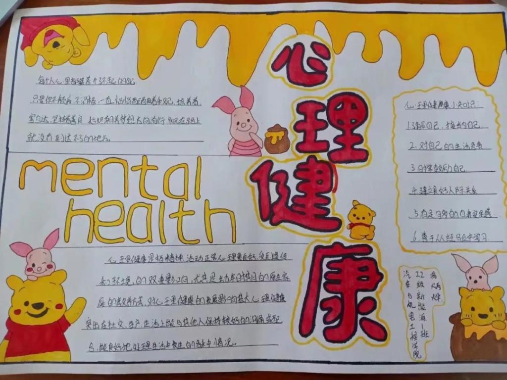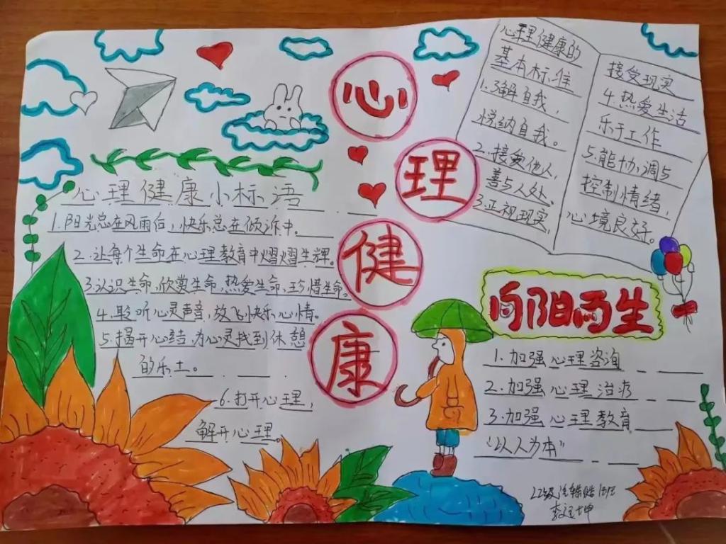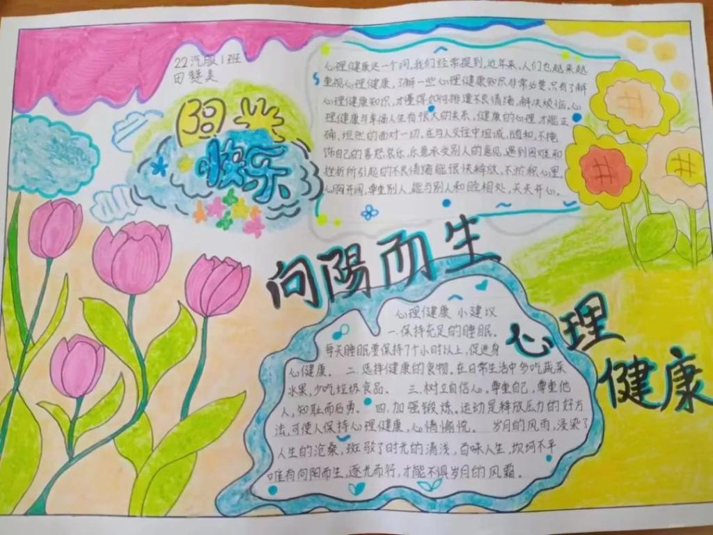 为进一步提高大学生的心理素质,促进大学生的身心健康和谐,宣传普及心理健康知识,推进校园心理文化的建设。我院于2023年3月30日,在各班开展了一场“心理健康”主题的黑板报、手抄报比赛活动。