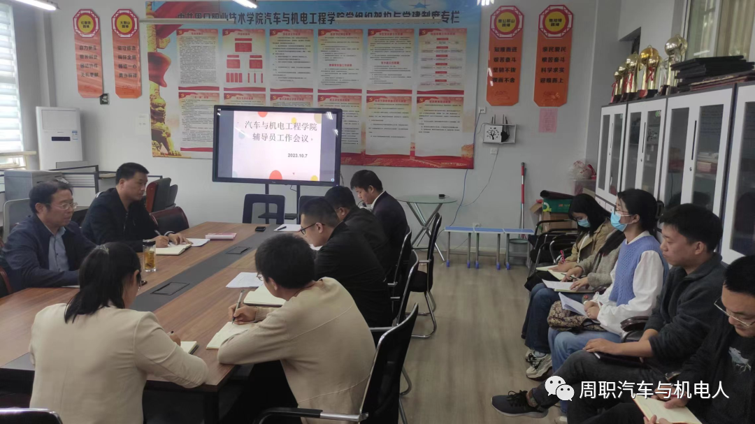为进一步做好学生工作,精准把握学生工作新形势与新任务。周口职业技术学院汽车与机电工程学院2023年10月7日下午2点在二楼党员活动室召开第五期辅导员工作例会。党总支书记崔东风、副院长王文立、学籍员李红涛、就业员王云皓及21级、22级、23级全体辅导员参加会议。