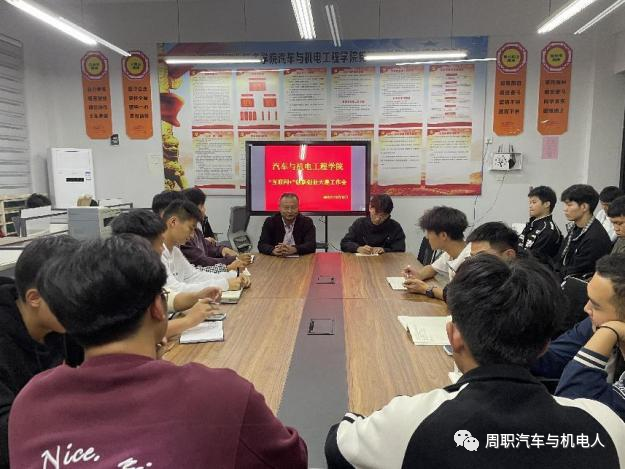 为了进一步引领大学生对新时代社会网络发展的前行,培养大学生的创新创业能力和实践经验的积累,锻炼同学们的创新思维以及团队合作能力。周口职业技术学院汽车与机电工程学院2023年10月12日开展了“互联网+创新创业”工作会。副院长田伟华、22级23级全体班长参加本次会议。副院长田伟华主持本次会议。