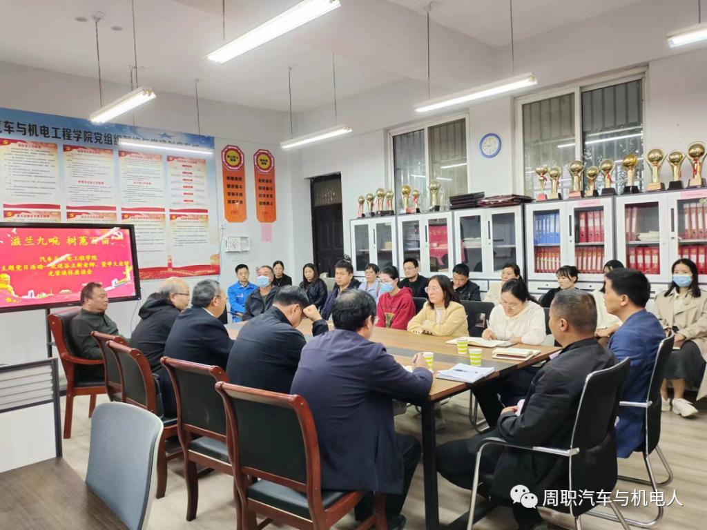 丹桂飘香,晚菊傲霜。2023年10月19日下午四点,汽车与机电工程学院在党员活动室召开主题党日活动-为退休老教师谷立新老师和董学义老师举行欢送会,学校党委副书记李明臣同志、汽车与机电工程学院全体教师党员参加会议,会议由李向前院长主持。
