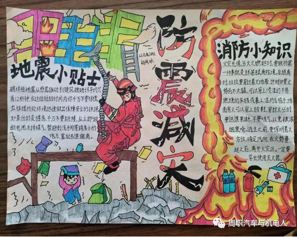 为加强防震减灾意识,增强防震减灾综合应急能力。周口职业技术学院汽车与机电工程学院于2023年10月27上午日举行以“防震减灾 珍爱生命”为主题的手抄报活动,各班积极参与。