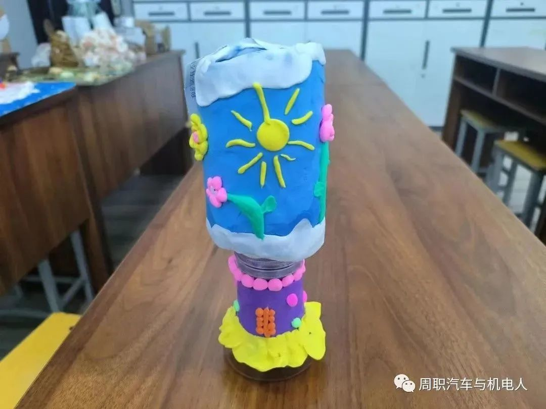 为了促进大学生德智体美劳方面能够全面发展,倡导废品再利用与绿色环保理念,汽车与机电工程学院开展“节约资源,变废为宝”的创意手工制作活动。同学们踊跃参加,或自己独立制作,或与同学共同合作完成,在大家的巧思妙想下,通过绘画、剪、拼、贴等多种形式,各种废旧物品成为一件件有创造性的艺术品。