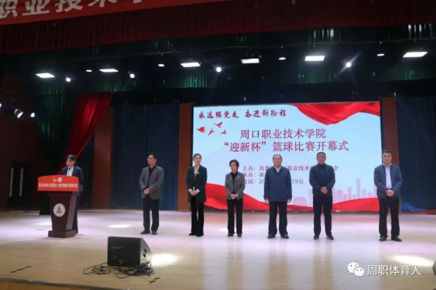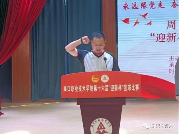 在党委副书记李庶泉教授宣布下,周口职业技术学院第十六届“迎新杯”篮球赛正式开幕。