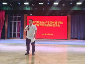 为深入推进大学生创新创业工作,我院于10月10日召开体育学院大学生创新创业培训会,会议由体育学院党总支书记范伟杰主持。