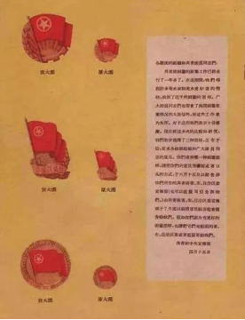 “1959429日,团中央书记处第一书记胡耀邦向中共中央书记处候补书记刘澜涛送交了关于请求党中央审议团徽式样的报告,并附上由李国靖画成的标准图和根据这个标准图制作的样章,报告还向党中央提出54日公布团徽的建议。