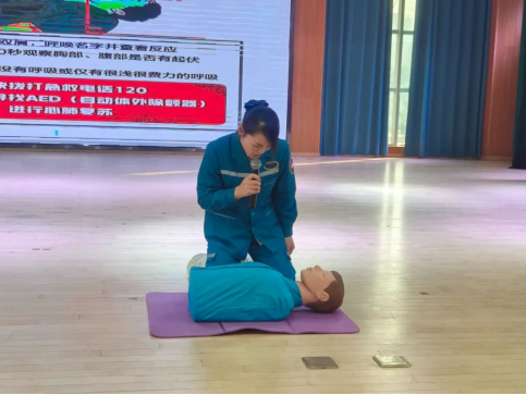培训老师为我们讲解了从及时有效拨打急救电话到掌握心肺复苏术是每个人都需要掌握的一项技能,及时正确的救助可提升抢救成功率,为挽救生命争取时间。随后培训老师以专业的角度讲解了心肺复苏术(CPR)的基本常识和方法:从确认现场环境安全、摸颈动脉、摆放心肺复苏体位、进行胸外心脏按压、开放气道到进行人工呼吸,从实施五个循环周期心肺复苏到判断复苏的标准,每一个核心步骤的讲解都细致入微。