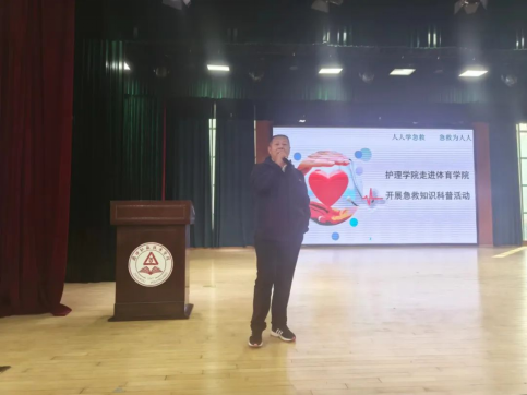 我院为普及急救知识与技能,增强同学们的自救互救意识,充分有效抓住应急救助的黄金救援时间,我院于3月12日,邀请护理学院为同学们科普急救知识,会议开始由体育学院院长徐长宇与范伟杰书记为会议拉开序幕。