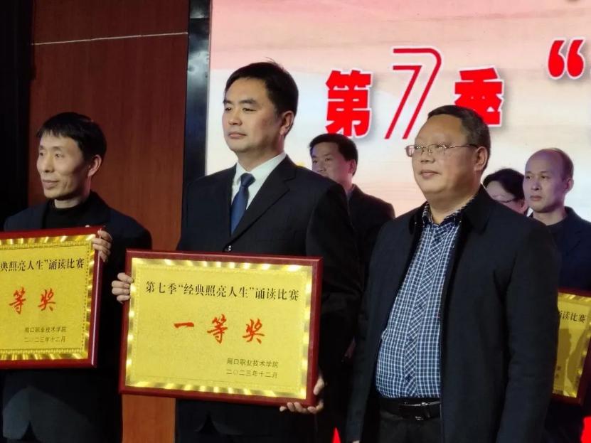 2023年12月27日,周口职业技术学院传承经典铸魂育人第七季“经典照亮人生”诵读比赛在开元校区励德厅隆重举行。医学院节目《红色乳娘》以全场最高分,荣获“一等奖”。