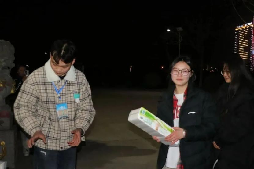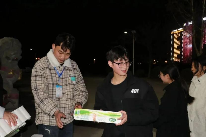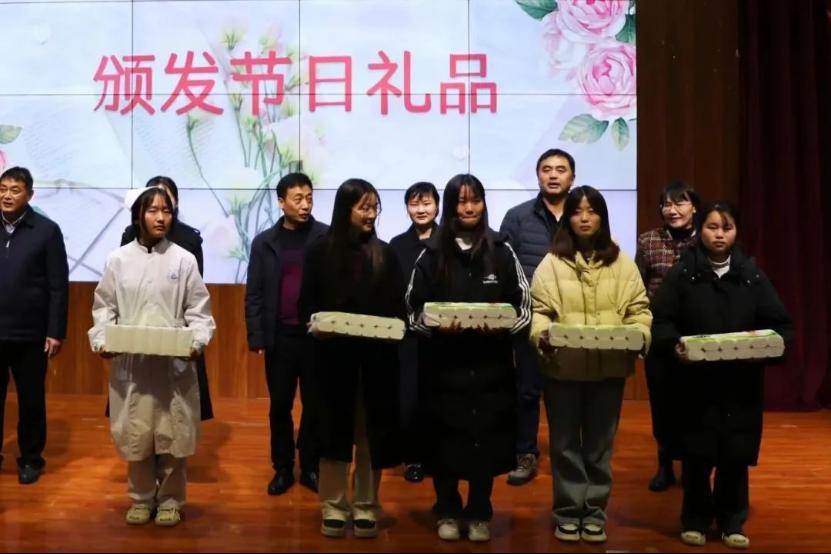 活动当晚,团总支和自律委员会学生骨干为全院在校女同学送上礼品。