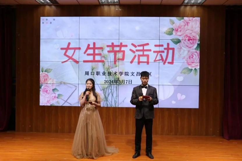 苑建伟引用“蒹葭苍苍,白露为霜”,“窈窕淑女,君子好逑”等经典诗词表达对女性的赞美和尊敬。最后用世间因花样璀璨的奋斗女性,而更加瑰丽;愿你们乘风破浪,不负韶华时光;愿你们事事如意,享尽世间美好;愿你们珍爱自己、不忘初心,为在座的同学们送上亲切的祝福。