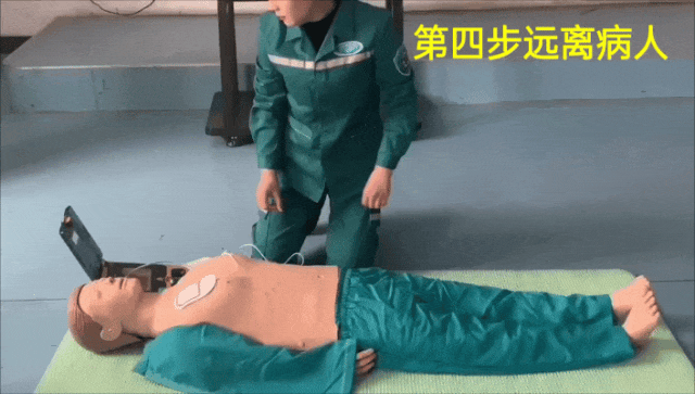 (2)把他的衣服解开,充分暴露胸部,迅速擦干胸部过多的水分或汗液,必要时清除过多的胸毛,确保电极片与皮肤贴合紧密。