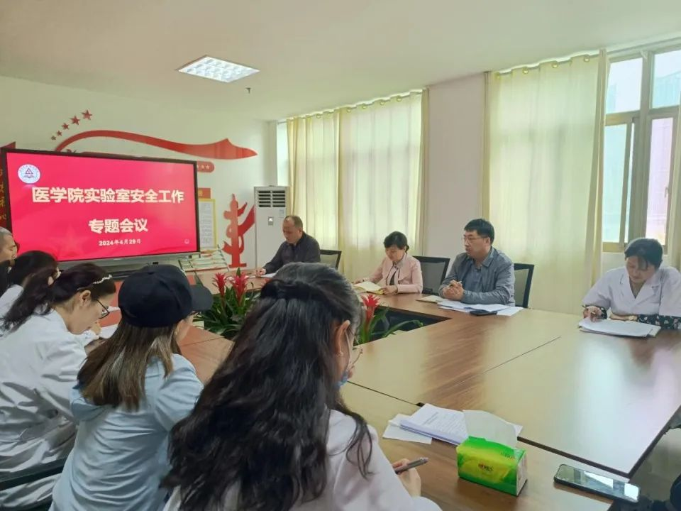 为深入学习贯彻落实河南省教育厅召开的2024年高校实验室安全工作培训会议精神,4月29日,医学院召开实验室安全工作会议。医学院院长刘敏,副院长郭瑞、教学办主任于鑫光、实训中心主任尚杰、全体教研室主任和实验室管理人员参加了会议。