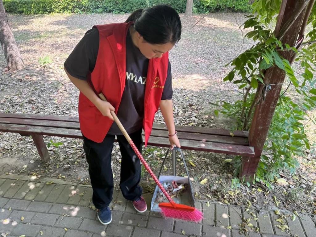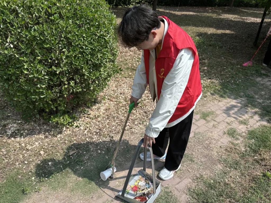 活动中,各班团员代表手持扫帚、簸箕等工具,充分发扬不怕脏、不怕累的优良作风,他们分工协作、干劲十足,对校园内主干道及绿化带里的白色垃圾、果皮纸屑、枯枝败叶等杂物进行集中清理,确保不留任何卫生死角。