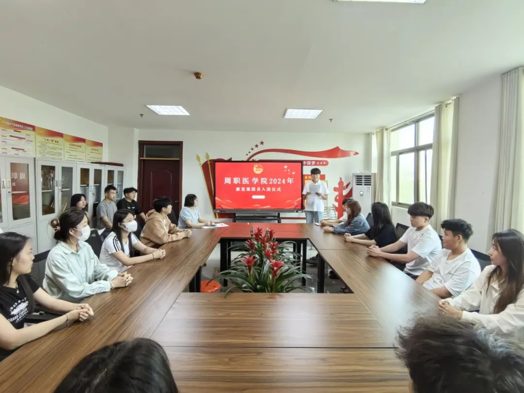 为深入学习贯彻落实习近平总书记关于青年工作的重要思想,进一步加强青年团员组织意识教育,更好地凝聚团组织活力,为新发展团员上好“入团第一课”。5月8日,周口职业技术学院医学院开展2024年上半年新发展团员入团仪式。团总支书记聂蕾、团总支副书记张浩然、新发展团员参加了此次仪式,仪式由贾一鸣同学主持。