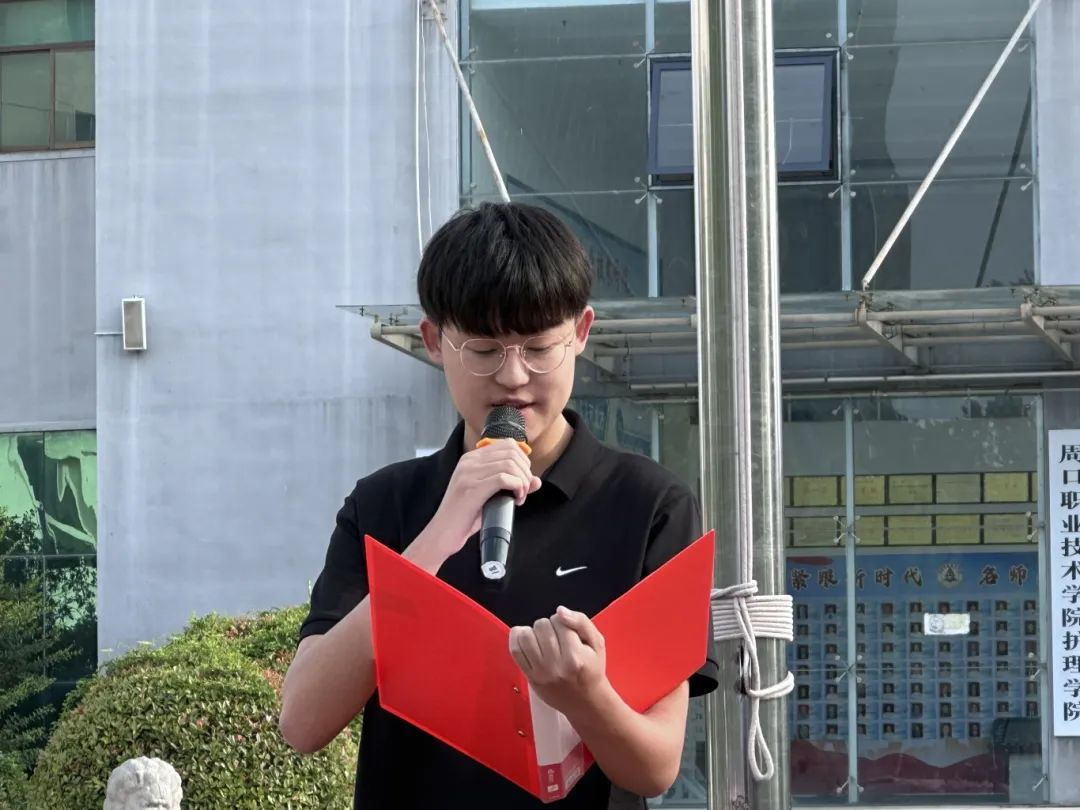 医学院23级康复治疗技术4班的贾一鸣以《请关注你的心理健康》为题,发表国旗下的讲话,他表示,“健康是一种积累,心灵的健康不会从天而降,它需要锻炼,需要在困难面前经历无数次的洗礼。它需要我们不断努力,在学习上积极进取,勇攀高峰。”最后,他呼吁同学们要善于正确地评价自己、接纳自己,保持积极的心态,学会正面思考。同时学习掌握人际交往、情绪管理等方面的技能,做好自我调节,必要时向他人求助,及时调节消极想法与行为。珍惜青春时光,让青春在阳光下绽放绚丽的光彩。