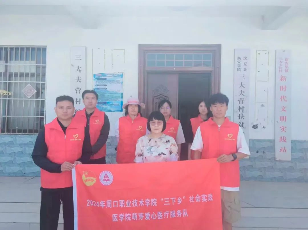 为深入学习贯彻落实党的二十大精神和习近平总书记关于健康中国建设的重要论述,积极响应国家号召,在基层践行青春使命担当。6月26日,周口职业技术学院医学院党总支书记苑建伟、院长刘敏、副院长王向华、副院长郭瑞、团总支书记聂蕾、医学院教师王东升、卢雯莉带领由八名学生组成的医学院萌芽爱心医疗服务队来到了周口市沈丘县三大夫营村进行健康急救知识宣讲活动。