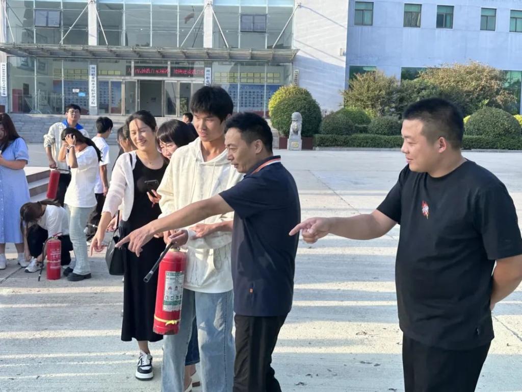 活动过程中,乔淼向同学们展示了灭火器的使用方法,接着,同学们在各位领导的指导下亲手操作灭火器,确保了本次演练的安全性和有效性。