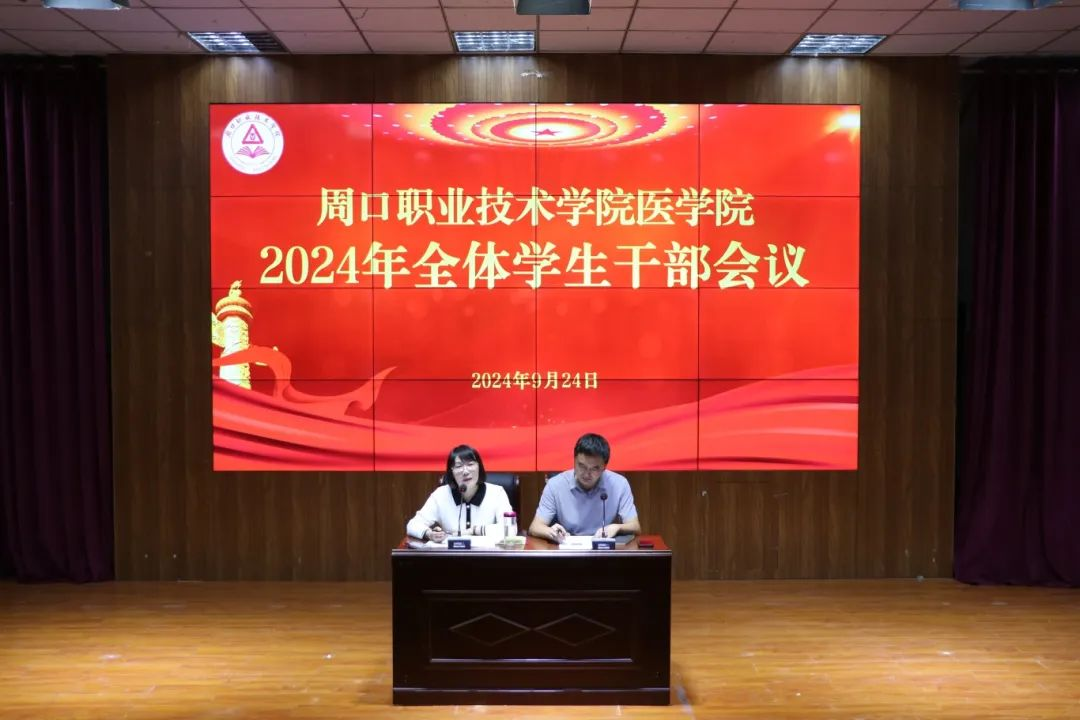 为进一步加强学生干部队伍建设,提高学生干部队伍的综合素质能力,充分发挥学生干部的模范带头作用。9月24日,周口职业技术学院医学院开展2024年全体学生干部会议。医学院副院长王向华、学管办主任聂蕾、医学院全体学生干部参加本次会议。会议由聂蕾主持。