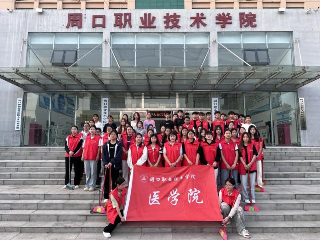 在国庆佳节来临之际,为深入学习贯彻落实习近平总书记关于志愿服务重要指示精神,大力弘扬“奉献、友爱、互助、进步”的志愿者服务精神,积极引导我院团员和入团积极分子积极践行社会主义价值观,切实担负起推进新时代志愿服务的职责使命。9月28日,周口职业技术学院医学院开展“迎国庆·唱响志愿精神”志愿服务活动。医学院团总支书记聂蕾带领团员代表和入团积极分子参加本次活动。活动地点为周口职业技术学院附属医院。