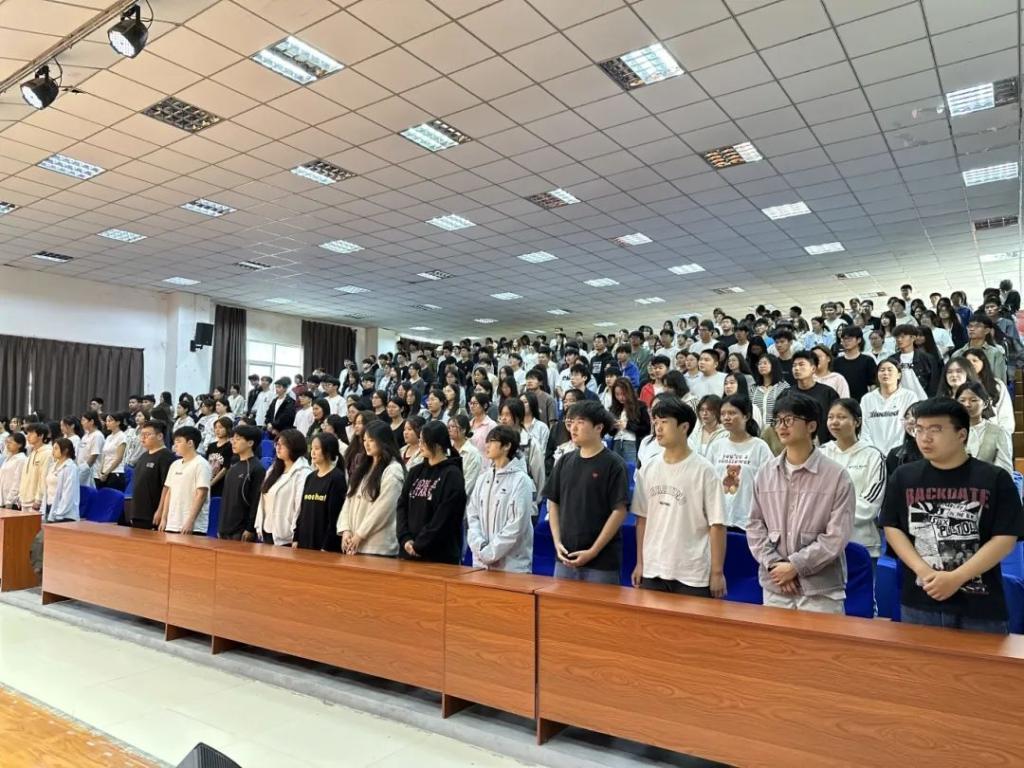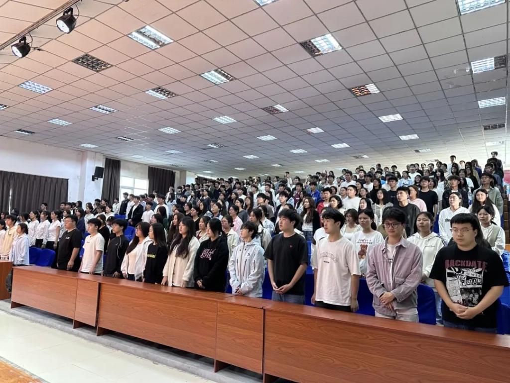 大会在庄严的国歌声中拉开序幕,全体起立,奏唱国歌。