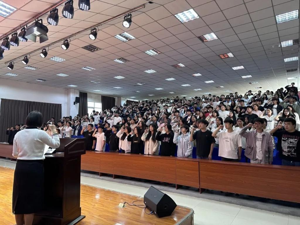 在聂蕾的带领下,全体学生干部高举右拳,庄严宣誓。每一段字句都铿锵有力,每一段声音都充满力量。表明了大家全心全意为同学服务的决心与信心。