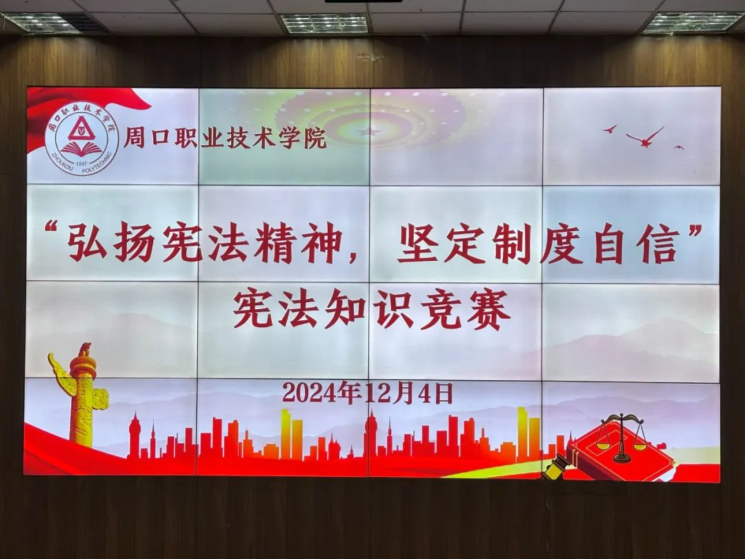 2024年12月4日是我国第十一个国家宪法日,为深入学习贯彻习近平法治思想,引导团员和青年学习宪法知识,弘扬宪法精神,做宪法的忠实崇尚者、自觉遵守者、坚定捍卫者,营造“人人尊崇宪法,人人践行宪法”的校园氛围。12月4日,周口职业技术学院医学院于教学楼一楼多媒体报告厅开展“弘扬宪法精神,坚定制度自信”宪法知识竞赛主题团日活动。