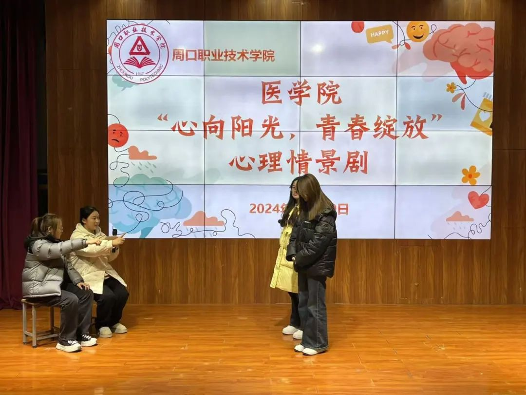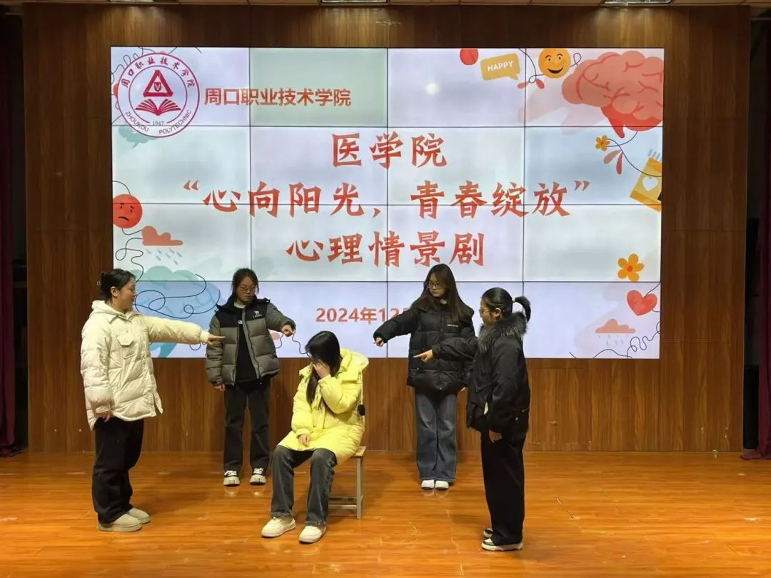 为丰富校园文化生活,营造良好的心理文化氛围。12月20日,周口职业技术学院医学院开展“心向阳光,青春绽放”心理健康情景剧活动。