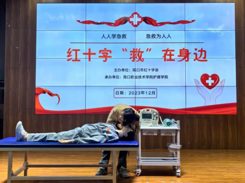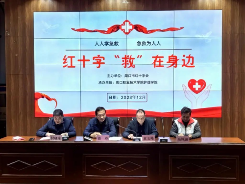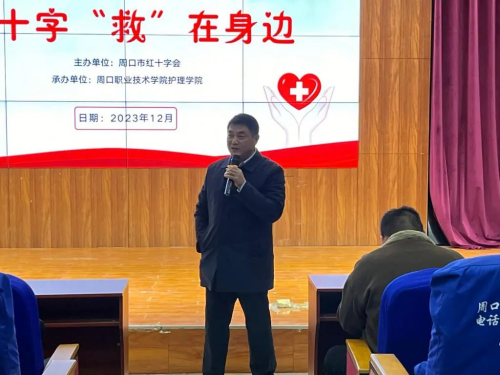 为深入学习贯彻落实习近平总书记关于“人民至上,生命至上”的重要理论部署,提高同学们的应急救护知识技能和校园服务能力,12月7日,周口职业技术学院护理学院协同周口市红十字会、周口市港区医院在文昌校区学术报告厅开展“红十字‘救’在身边”急救知识宣讲。护理学院领导班子及全体教师参加会议。会议由护理学院院长付晓东主持。