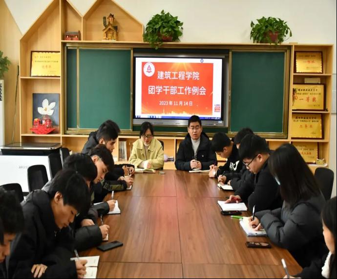 为增强学院团学干部发展,做好模范带头作用。建筑工程学院于11月14日,在党员活动室召开团学干部工作例会,副院长杨改、学管办主任郭华伟及全体团学