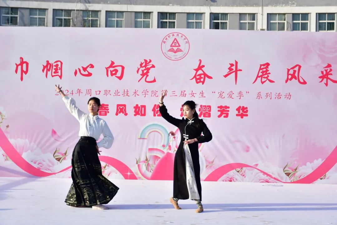 各学院优秀教师及学生为大家带来一系列精彩纷呈的表演。例如诗画古筝《梦江南》、时装秀《幻影》、汉服秀《绝代风华》等。这些节目都展现了女性的多彩魅力和无尽才华。感受女性的力量与美丽。同时,也让我们共同思考,如何在日常生活中给予女性更多的尊重和关爱,让她们能够自由地展现自己的光芒。