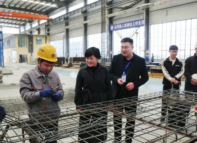 周口筑友智造科技有限公司总经理宋春风对于爱霞一行的到来表示热烈欢迎,陪同参观企业楼梯/异形构件、长线模台墙板、双循环综合流水线及绿色建筑科技园展厅。