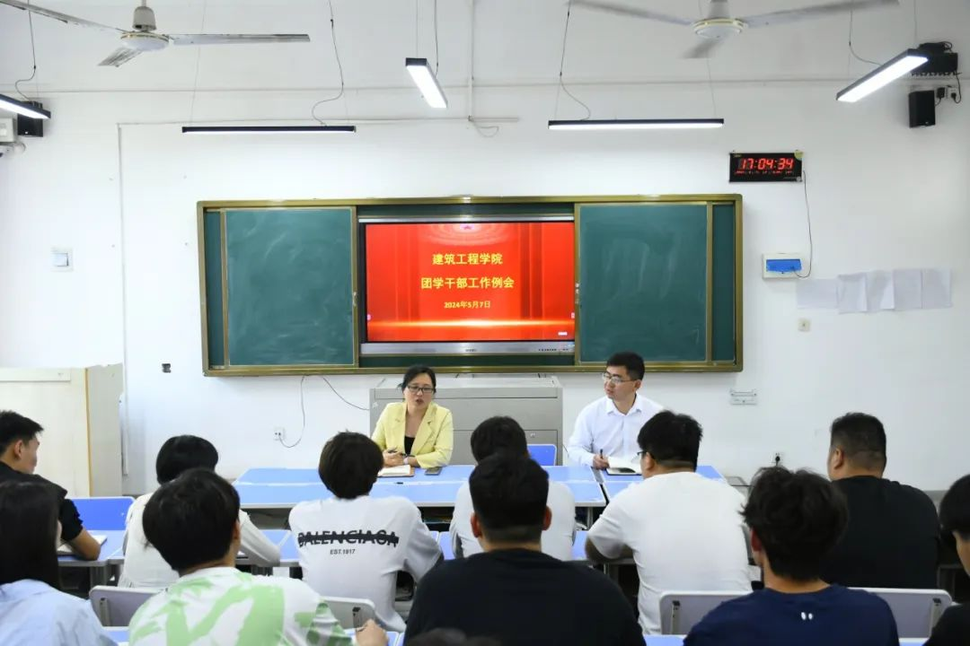 为加强我院团学干部建设,牢固树立安全意识。2024年5月7日,建筑工程学院在6214召开团学干部例会。建筑工程学院副院长杨改、学管办主任郭华伟及全体团学干部参加会议。会议由杨改主持。