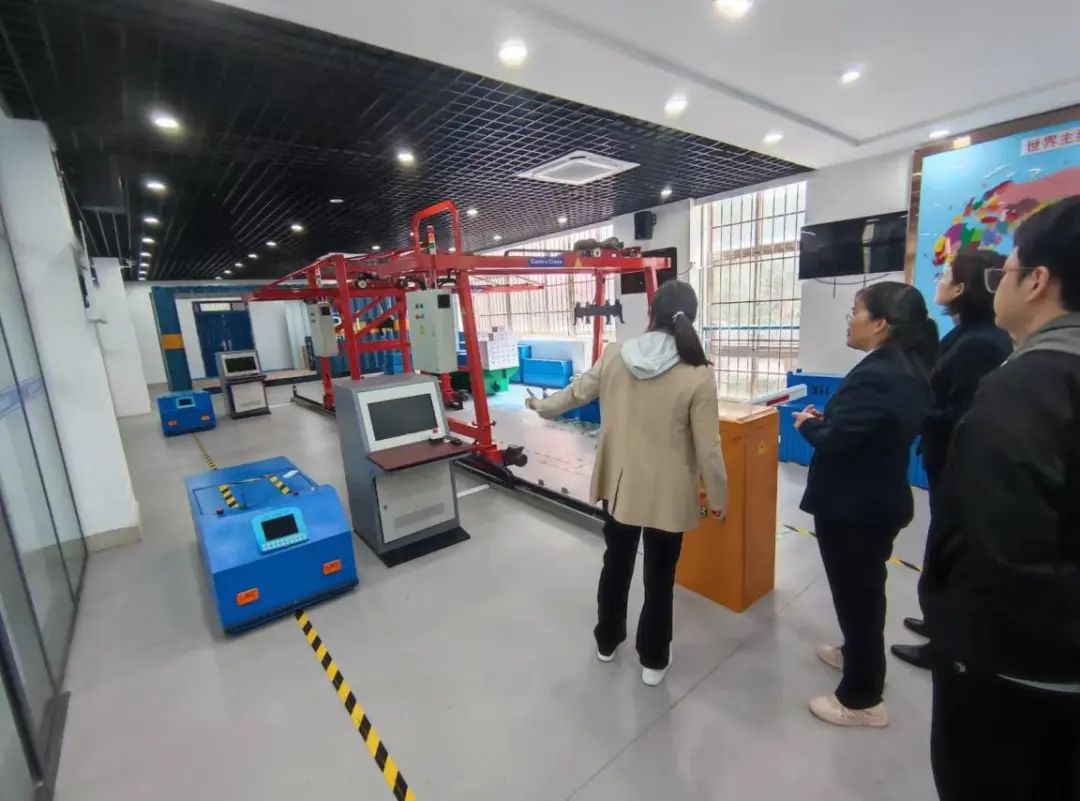 随后带领大家参观了教学实训设备等基本设施,如自动化码头操作模拟软件、岸桥和门机模拟操作室、港航安全警示教育基地、港口运营管理综合实训中心等,并详细讲解了各实训设备在教学中的具体应用情况。