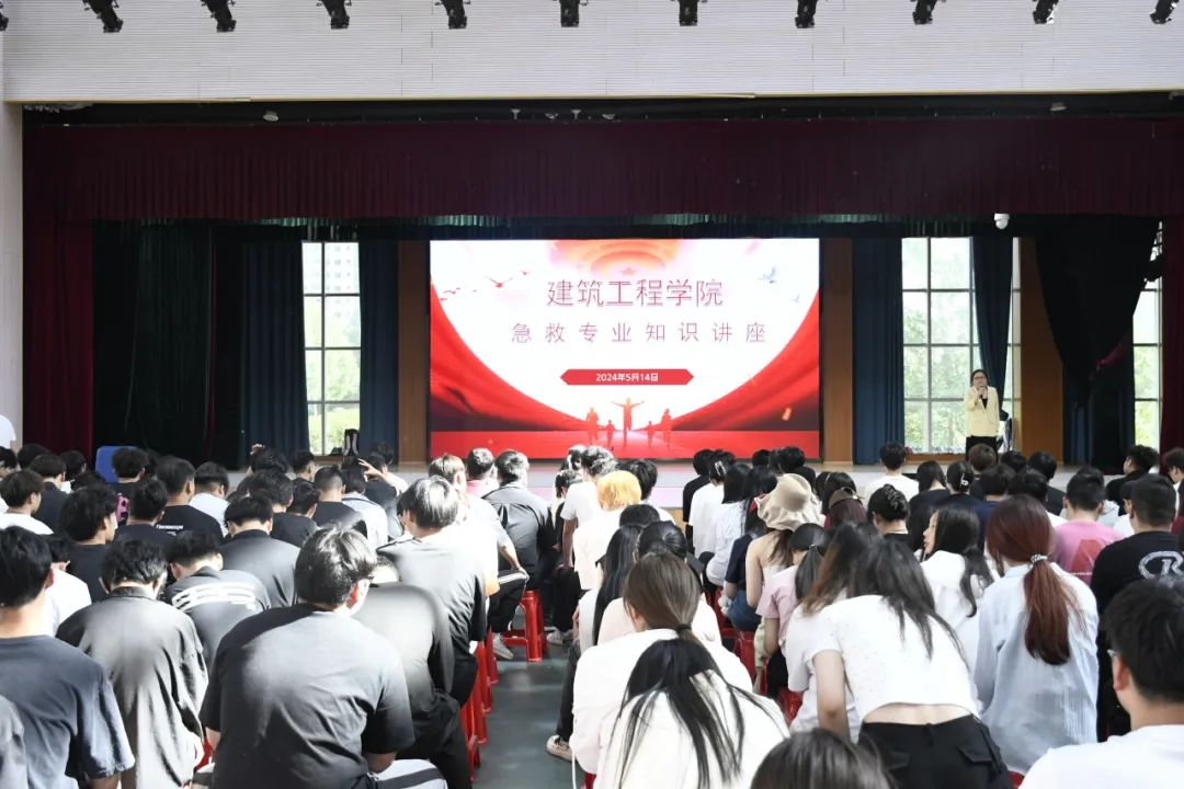 为进一步提高学生急救意识,提升学生对突发事件的应对和救护能力。2024年5月14日,建筑工程学院在体育馆开展急救专业知识讲座,此次讲座邀请到护理学院李艳老师,讲座由杨改主持。