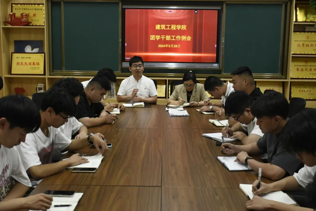 为确保学生日常管理工作顺利进行。加强我院团学组织建设。2024年5月28日,建筑工程学院于党员活动室召开团学干部工作例会。建筑工程学院副院长杨改、学管办主任郭华伟以及全体团学干部参加此次会议,会议由杨改主持。