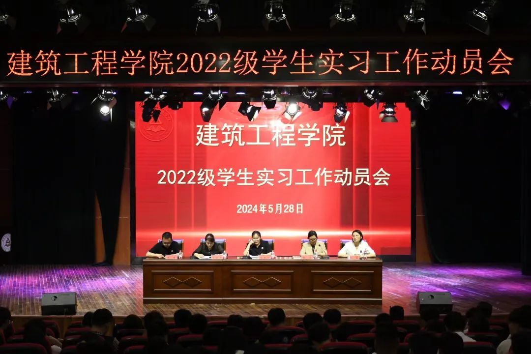 2024年5月28日下午3点,建筑工程学院在励德厅召开了2022级学生实习工作动员会,建筑工程学院班子成员、22级辅导员和22级全体学生参加会议。会议由教学副院长宁丽平主持。