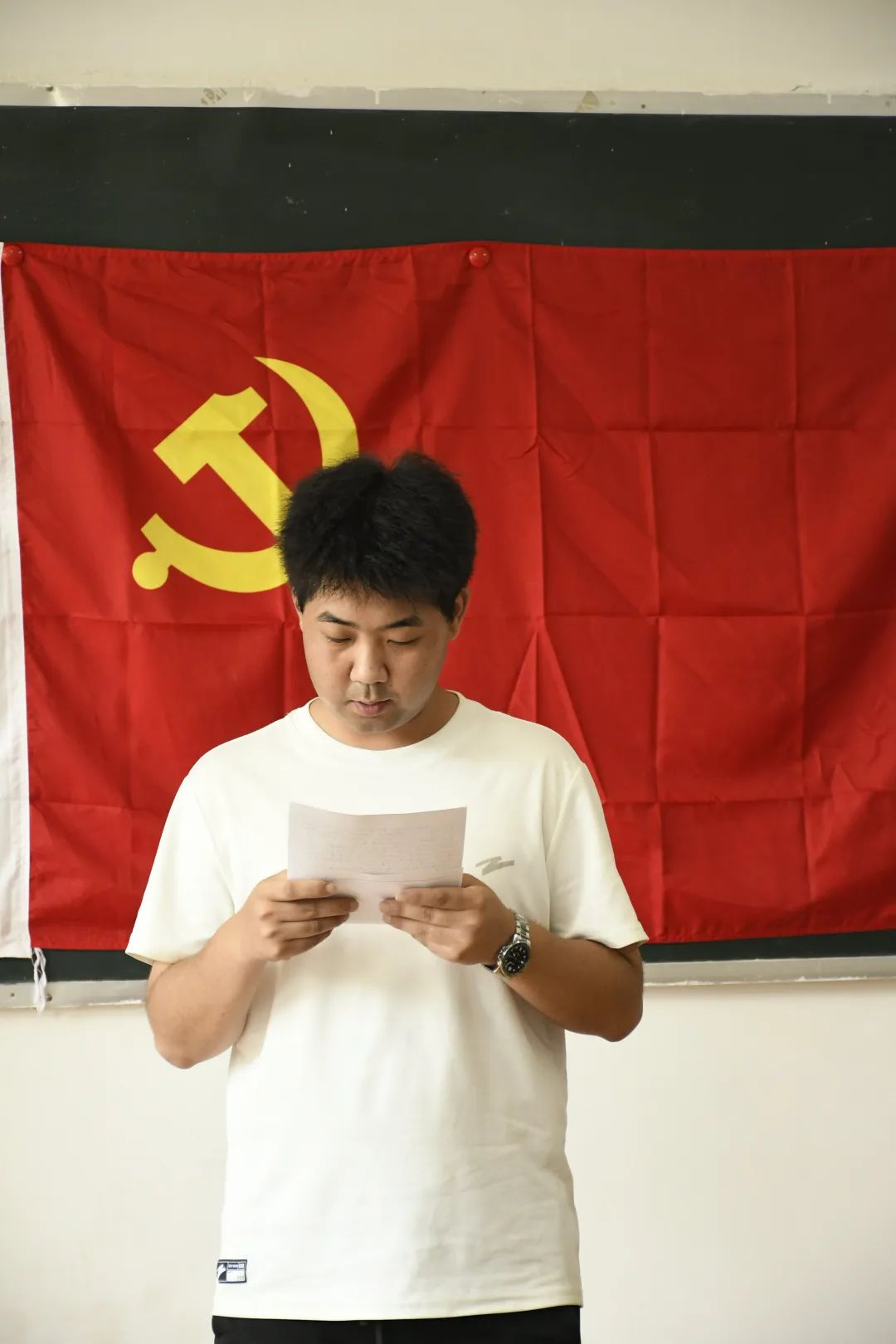 陈俊帅等10位预备党员宣读转正申请,汇报自己在预备党员以来的思想认识、学习情况、日常生活和工作情况等方面的表现、不足与进步,表达了成为正式党员的愿望和对党的坚定信念。
