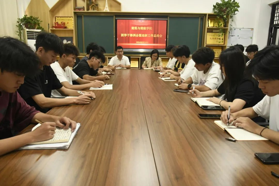 为进一步提高学生干部队伍的综合素质与能力,总结迎新工作,2024年9月10日,建筑与港航学院在党员活动室召开团学干部例会暨迎新工作总结会,建筑与港航学院副院长杨改、学管办主任郭华伟以及团学干部成员参加此次会议,会议由杨改主持。