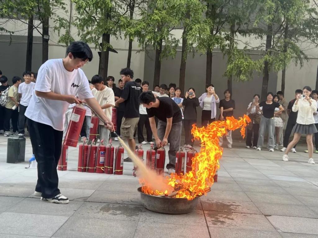 实操之前,老师向同学们阐述了一些容易引起火灾的危险操作,以及火灾的主要类型,详细地介绍了灭火器的种类和使用方法,着重提醒同学们遇到火情,不要慌张,冷静应对,牢记消防器材的使用方法。